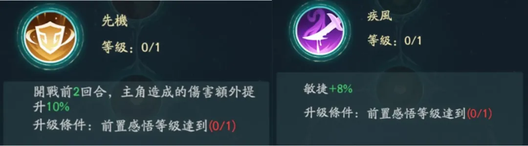 先机:开战前2回合,主角造成的伤害额外提升10%!这个技能比较适合暴击流,另外就是不知道这个提升伤害是否会对吞灵有加成,如果有的话那么连反吞灵伤害将会在上一层楼!