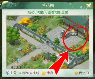 3、别急,故事还没结束,此时返回主线地图【渝州城】,在后院找到景天老板(位置下图所示),将【山河社稷图】赠与景天,还能收获另一项奖励——【通宝*1000w,混沌秘石*2】。